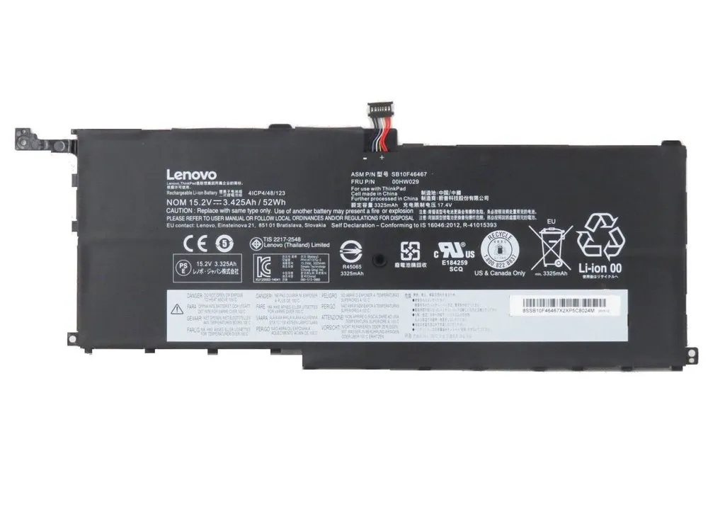 00HW028 Battery for LEN0V0 Thinkpad X1 Carbon 4th Gen 2016 / ThinkPad X1 Yoga 1st 2nd Ultrabook, P/N: 00HW029 SB10F46466 SB10F46467 SB10K97566 01AV438-15.2V 3290mAh