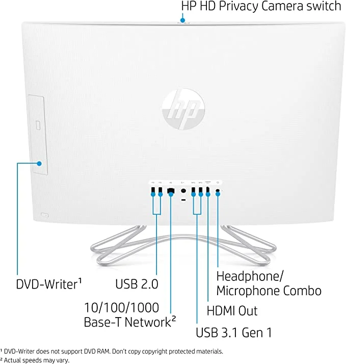 HP 24-dp006ur All-in-One Computer, AMD Ryzen 3 3200U, 8GB RAM, 256GB SSD, Windows 10 (24-F1040, White)