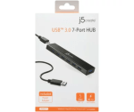 j5create 7-Port Powered USB 3.0 Data Hub with 3.3 ft Extended Cale [20W Power Adapter Included] for Mac, MacBook, Windows, Laptop, Surface, XPS, PC (JUH377)
