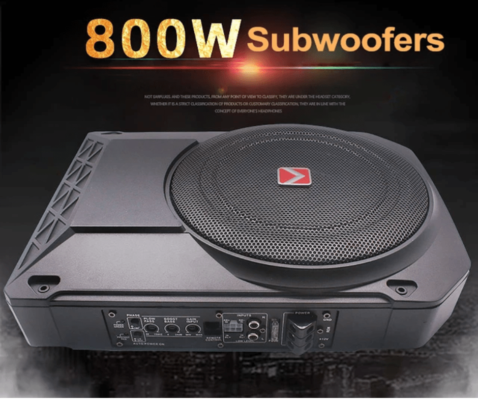KUERL 10 inch 800W under seat auto audio subwoofer modified 12V big power amplifier slim car subwoofer
