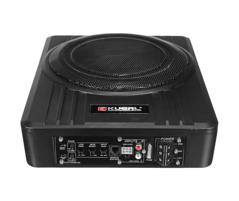 Kuerl powered under-seat subwoofer is the latest active under-seat sub-woofers series. No need for neither an external amplifier nor equalizer once you consider this option. Comes with a wired adjustable gain control for an impressive in car experience.
