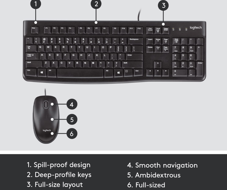 Getting things done should be simple. That’s what makes the MK120 Combo the right fit. A full-sized keyboard and mouse deliver a familiar, easy-to-use design that work right out of the box. Just plug in this corded combo via USB and go.