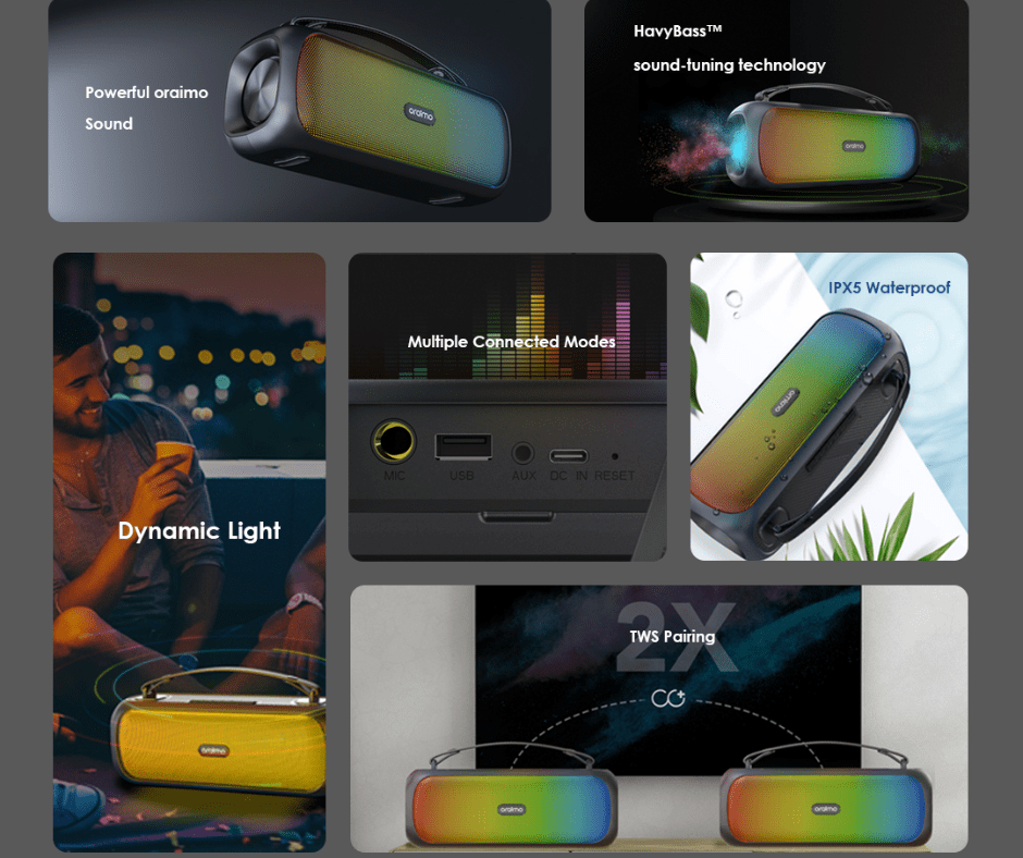 Oraimo Boom Powerful Sound Massive Bass Dynamic Light Effects Portable Wireless Speaker