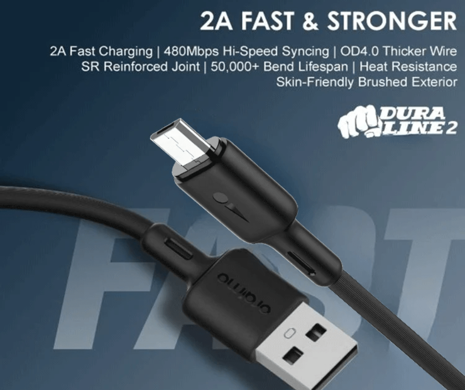 Oraimo DuraLine 2 Micro-USB 2A Fast Cable 1M – Black