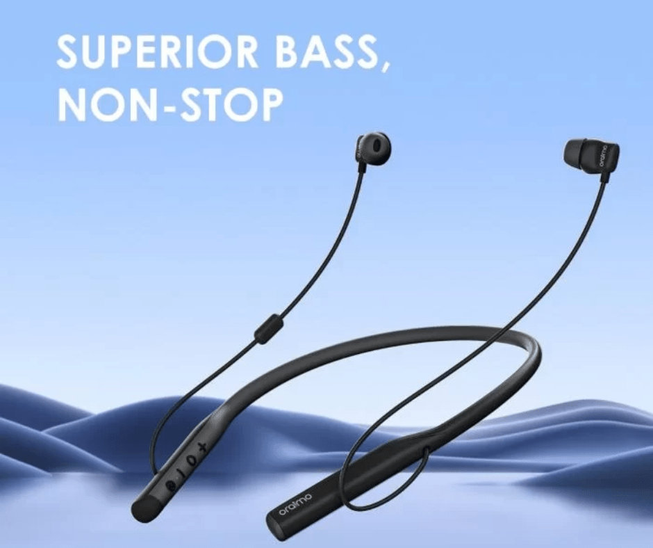 Oraimo Necklace 4 Bluetooth Neckband Wireless in Ear Earphones Deep Bass,50Hrs Playtime,ASAP Charge,ENC Tech,Low-Latency Ergonomic Neckband, Sweat-Resistant Magnetic Earbuds, Dual Pairing (Black)