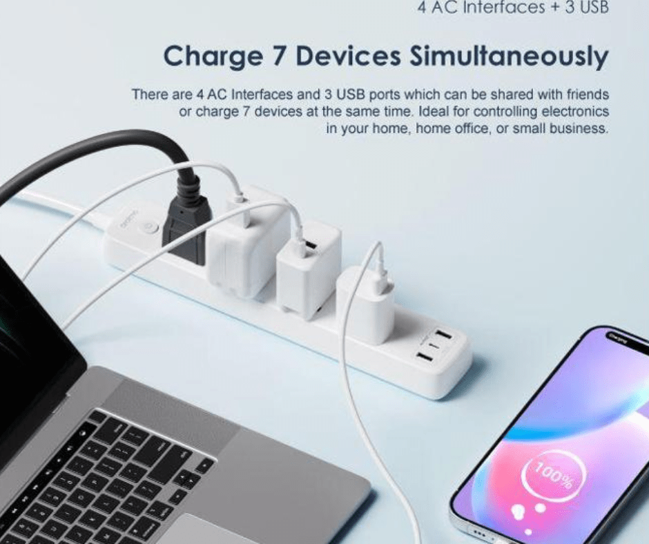 • Oraimo PowerHub features 4 AC interfaces and 3 USB ports which can be shared with friends or charge 7 devices at the same time.